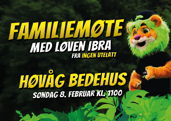 Velkommen til familiemøte med Løven Ibra på Høvåg bedehus, søndag 8. februar kl. 1100! Miniklang deltar.